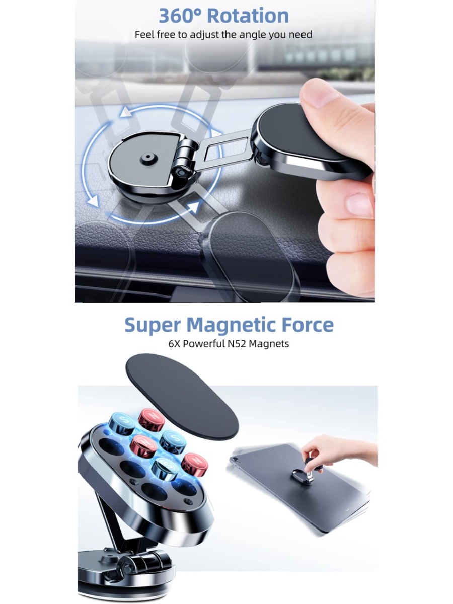 Auris H10 Araç Içi Oto Telefon Tutucu Torpidoya Cama Yapışan Manyetik Mıknatıslı 360° Dönebilen Katlanan