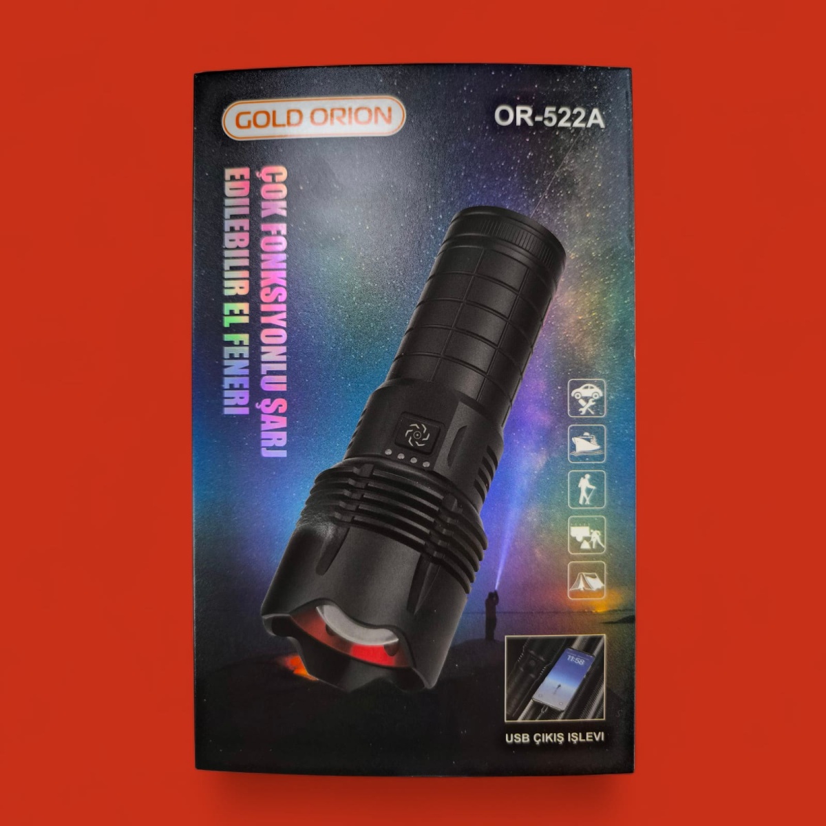 Gold Orion OR-522A - Çok Fonksiyonlu Şarj Edilebilir El Feneri