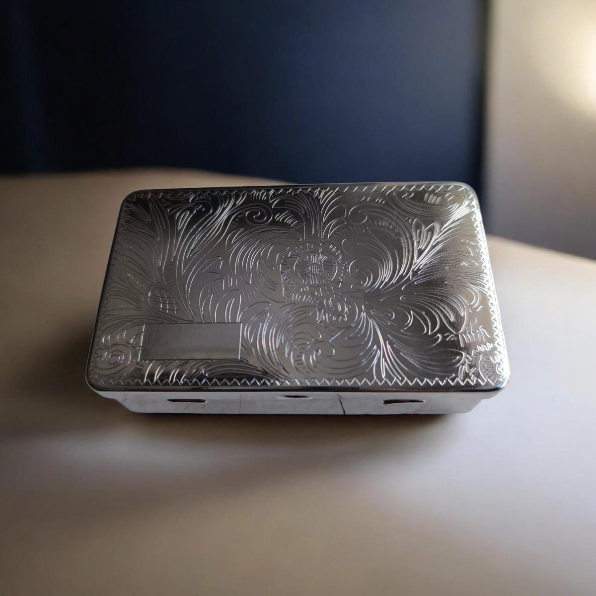 Şık tasarımı, sağlam metal gövdesi ve geniş iç hacmiyle günlük kullanım için özel olarak tasarlanmış fonksiyonel bir tütün aksesuarıdır. Üzeri işlemeli modern görünümü sayesinde hem estetik hem de dikkat çekici bir kullanım sunarken, derin hazneli yapısı ile tütününüzü düzenli ve güvenli şekilde taşımanıza yardımcı olur.